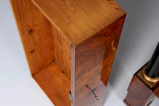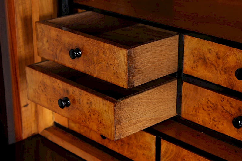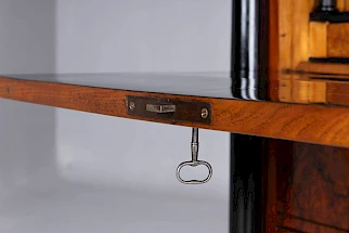 Dans l'époque Biedermeier, on veillait à une stricte symétrie dans l'espace. C'est pourquoi il y avait souvent une armoire qui faisait pendant au secrétaire. Ce qu'on appelle un "blender", dont la façade ressemblait certes à celle d'un secrétaire, mais qui n'en était pas un. L'armoire à écrire était bien mieux adaptée à cet usage que les secrétaires à cylindre ou à volets inclinés.