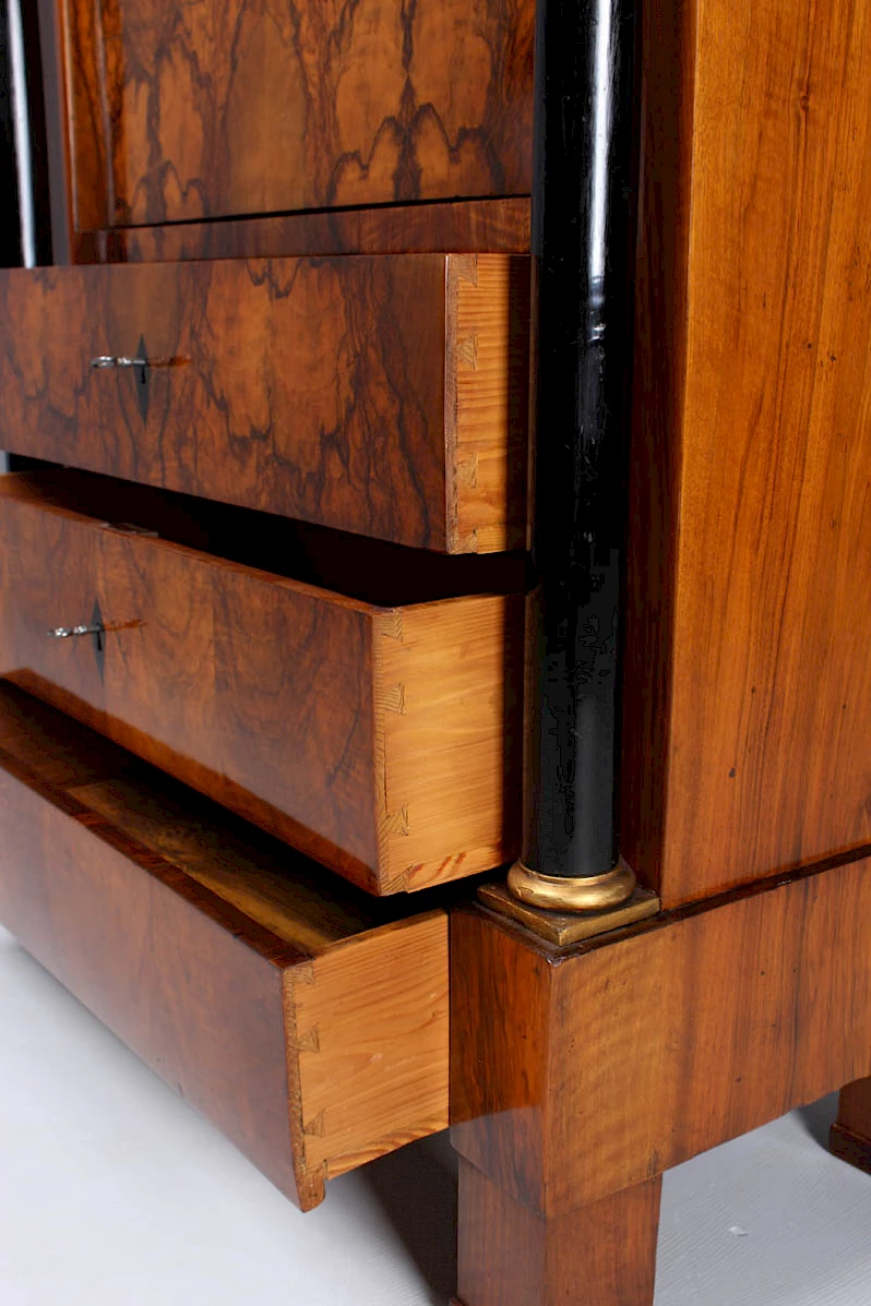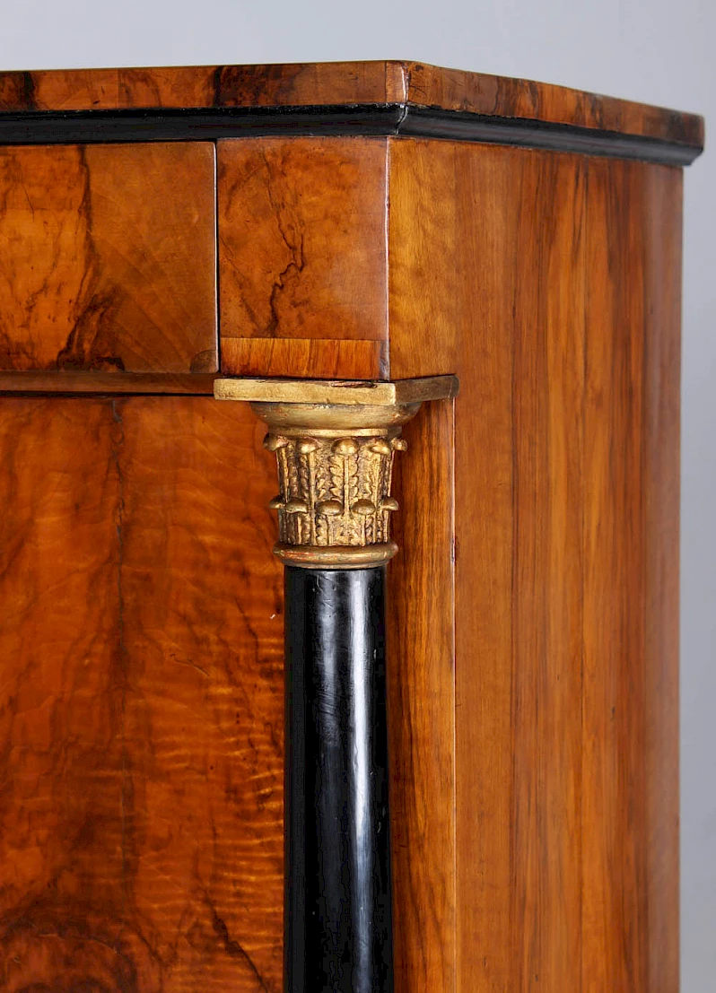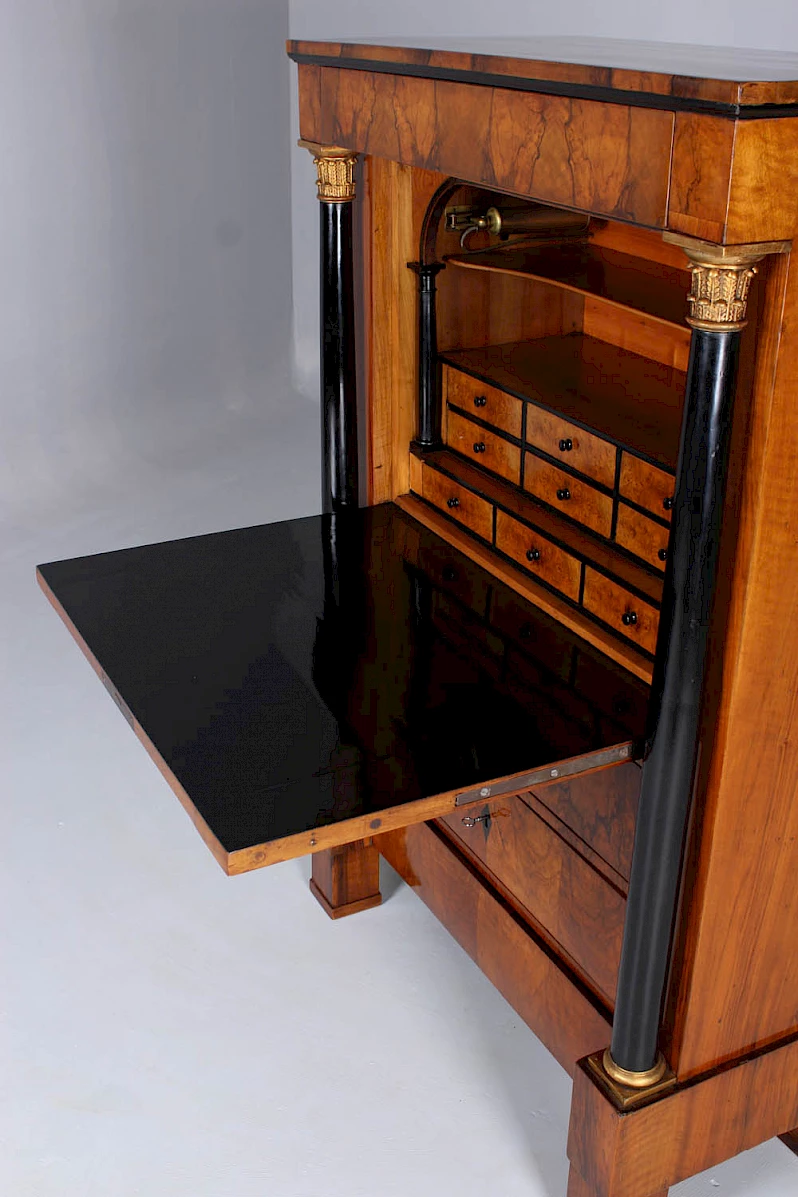 Secrétaire Biedermeier très étroit avec des colonnes pleines et un veinage magnifique.