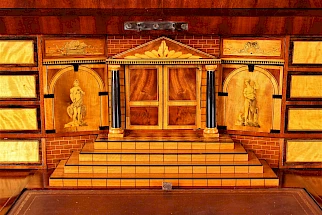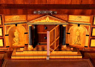La finesse des marqueteries se retrouve également à l'intérieur du pupitre.