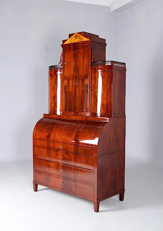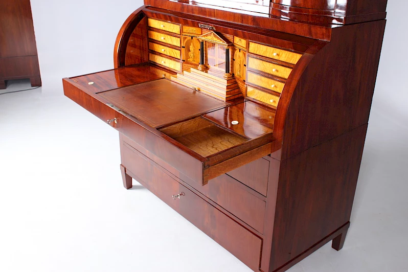 Il existait en différentes versions - comme secrétaire à cylindre simple et comme secrétaire à cylindre avec applique. Tous les secrétaires en applique ne disposent pas d'un deuxième casier de secrétaire utilisable comme pupitre, il existe aussi des versions plus simples avec une simple porte centrale.