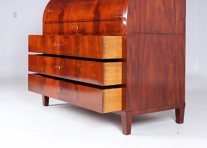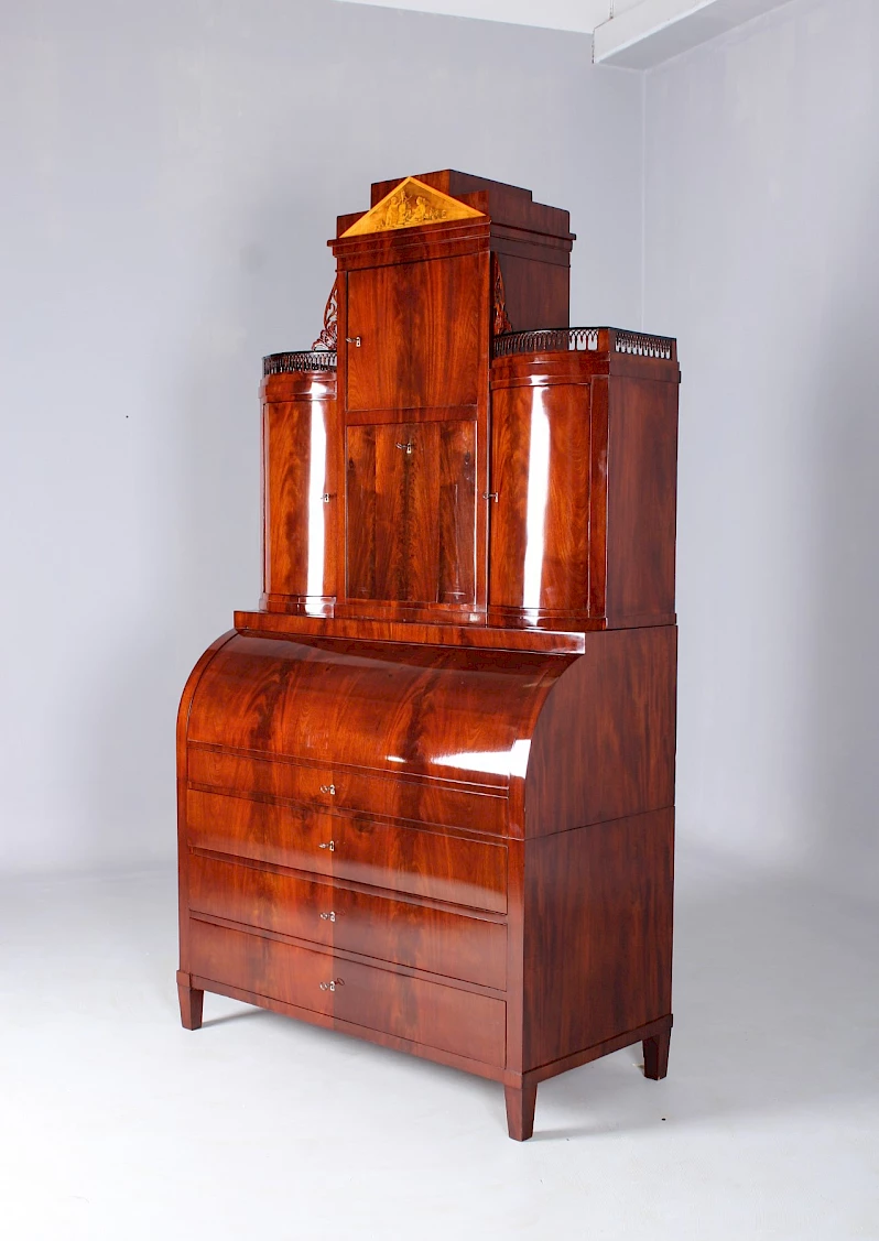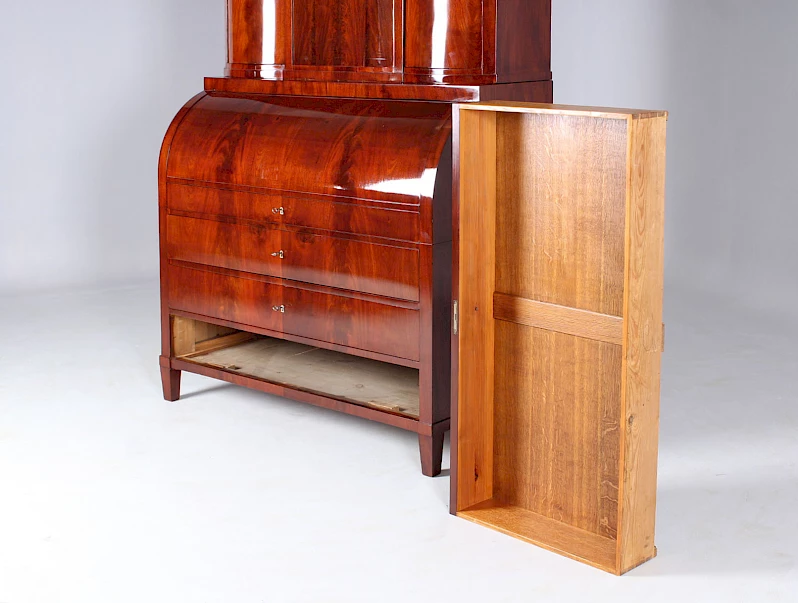 Excellent état de restauration, gomme-laque polie à la main. Tous les tiroirs fonctionnent parfaitement. Toutes les serrures et tous les mécanismes fonctionnent, les clés sont disponibles.