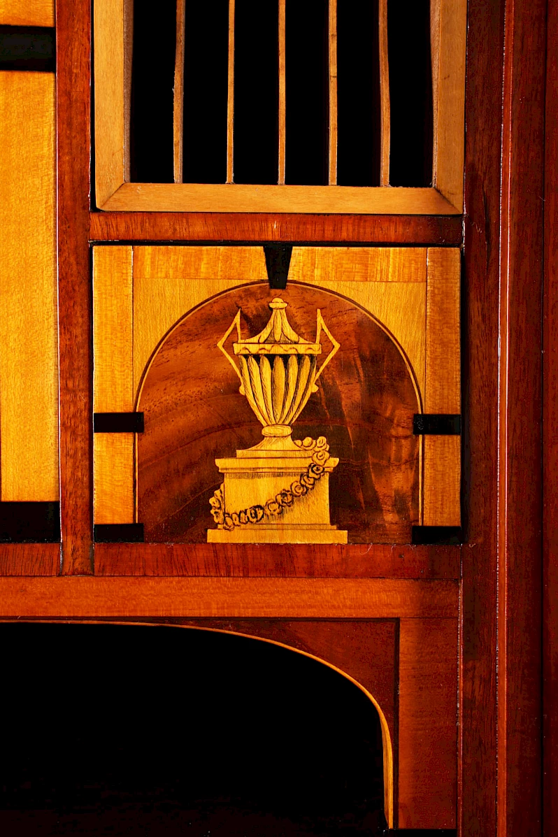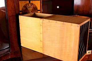 Les intérieurs de ces meubles se distinguent souvent par leur couleur du reste du meuble et sont parfois ornés de marqueteries artistiques.