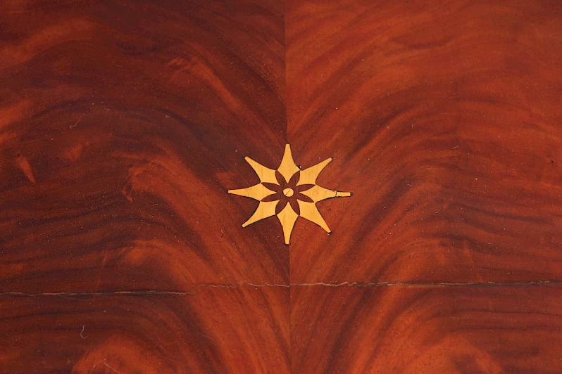 Marqueterie en forme d'étoile sur le couvercle.