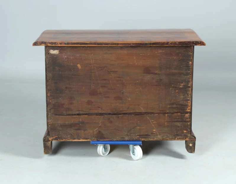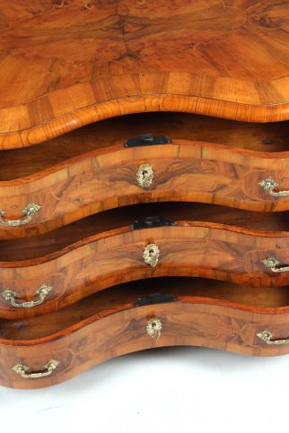 La commode a une façade incurvée et des côtés droits, le plateau suit cette forme.