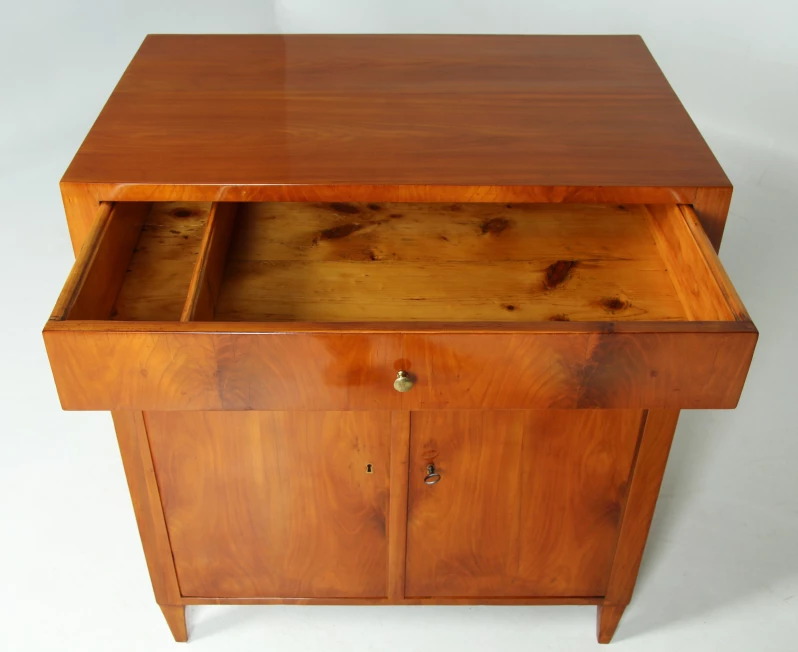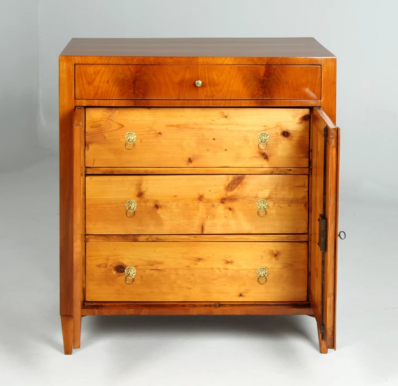 En tant que travail purement réalisé par l'ébéniste et destiné à une large classe bourgeoise, les meubles du début du 19e siècle se distinguent de ceux des époques précédentes. On renonce presque complètement aux ferrures précieuses, aux incrustations et aux marqueteries, voire aux formes arrondies et coûteuses à fabriquer. La structure du bois est soulignée dans sa beauté par une disposition symétrique et harmonieuse. Le polissage à la gomme-laque "attise" les veines, la structure du bois acquiert de la "profondeur", voire une certaine tridimensionnalité.