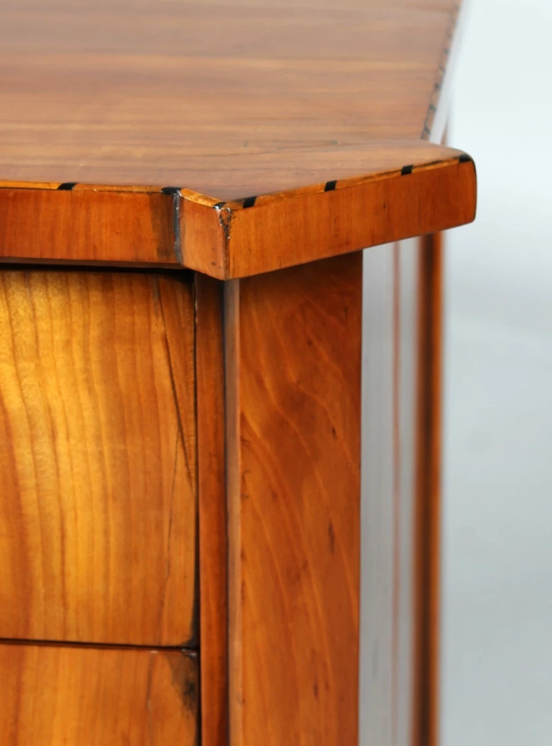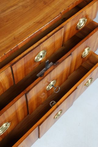 État : état restauré en conservant la patine. Les tiroirs fonctionnent de manière propre et fluide, la serrure fonctionne parfaitement.