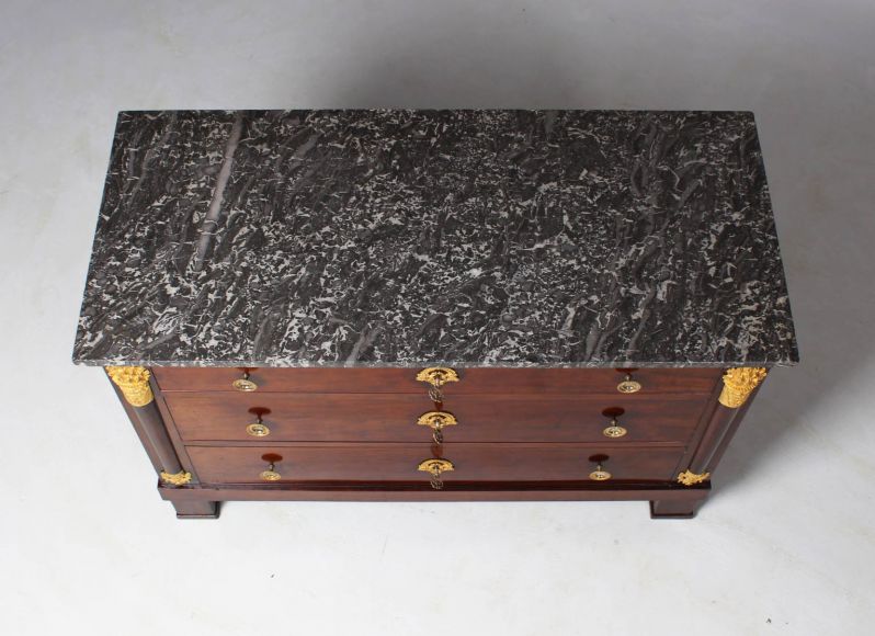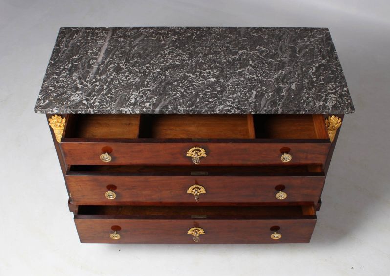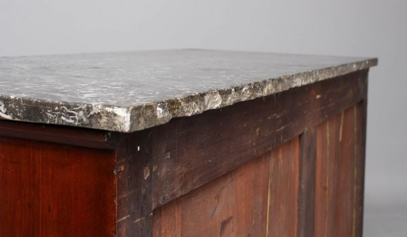 Les fonds de poussière situés entre les différents tiroirs témoignent de la grande qualité de la commode.