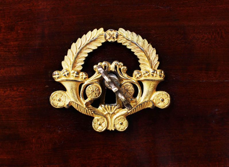 Les poignées de tirage des tiroirs sont également finement ciselées et dorées d'origine.
