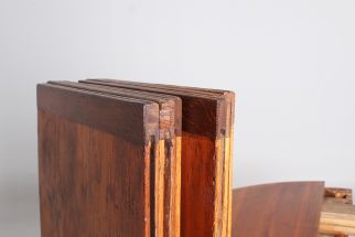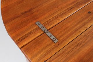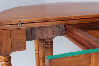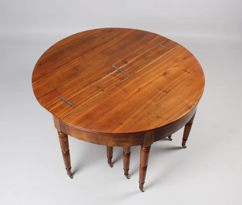 Si nous tirons sur le cadre à l'arrière, une sorte de tiroir s'ouvre et sert de support à la deuxième moitié de la table. On obtient ainsi une table circulaire de 135 cm de diamètre.