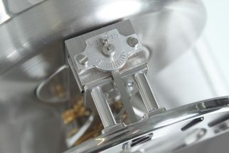 La livraison comprend une console également rhodiée pour le montage mural ainsi qu'une caisse de transport Atmos.