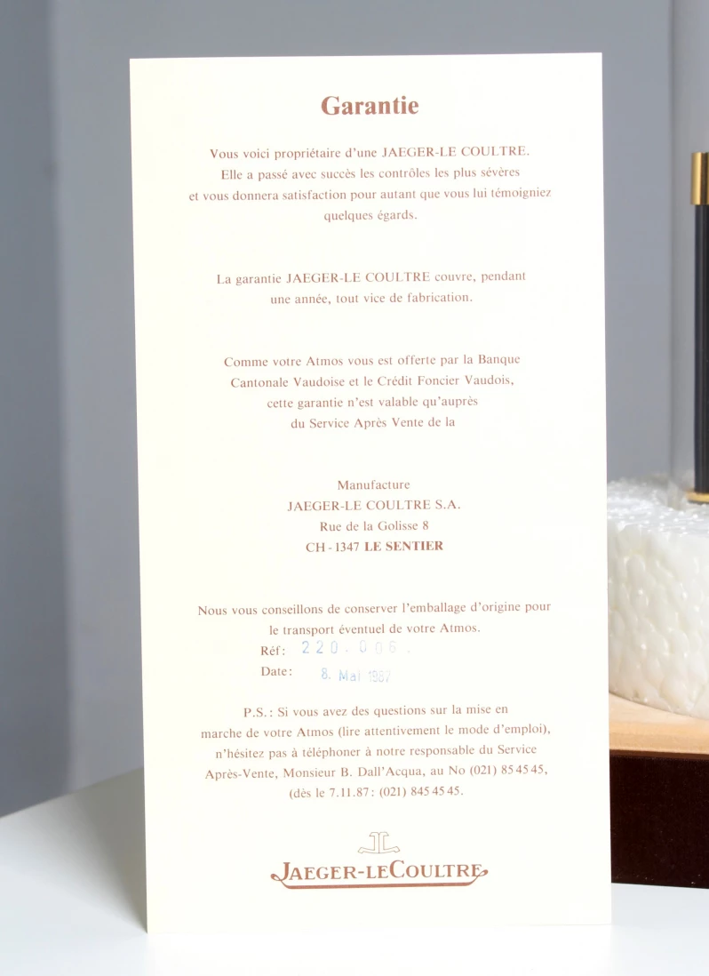 Fine et rare montre Atmos, fabriquée en édition limitée à seulement 3000 exemplaires pour le 150e anniversaire de la fondation de l'entreprise LeCoultre.