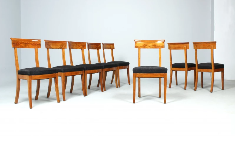 Bel et authentique ensemble de huit chaises Biedermeier identiques.