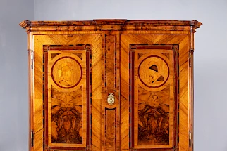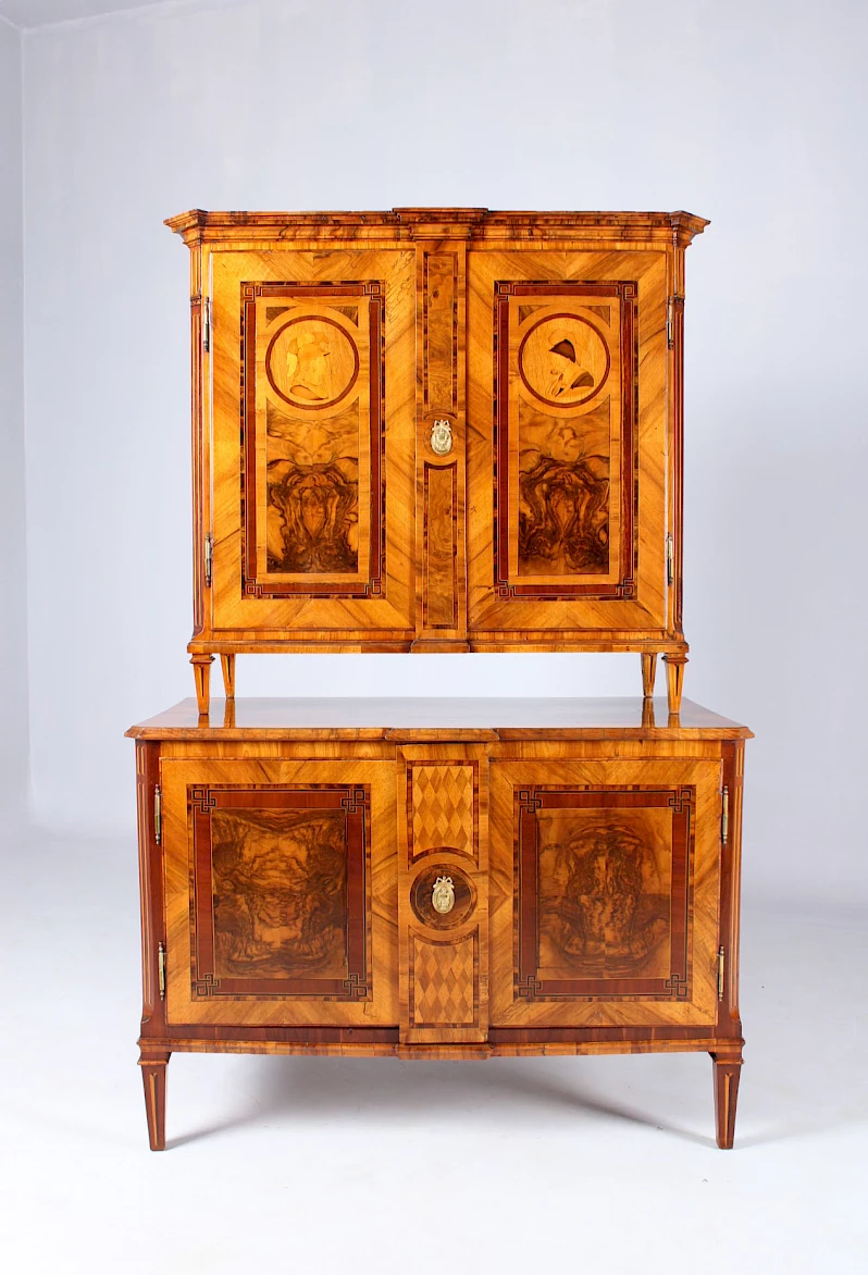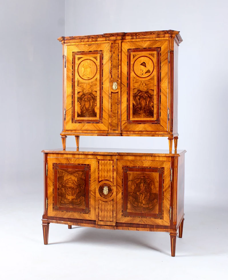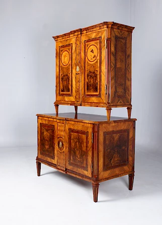 Meuble à poser en deux parties, les deux parties -typiquement autrichiennes- se tenant sur leurs propres pieds.