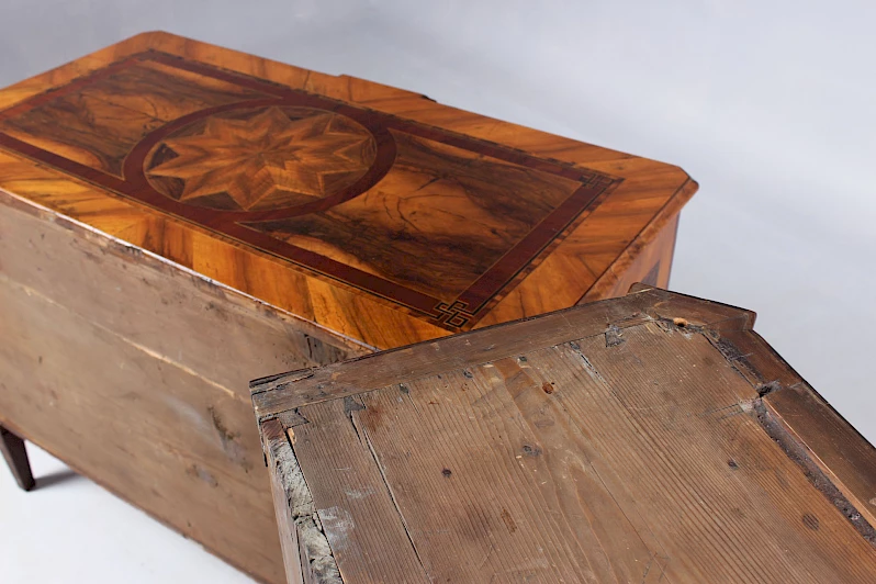 La conception du meuble est absolument typique du classicisme, également appelé style joséphien en Autriche.