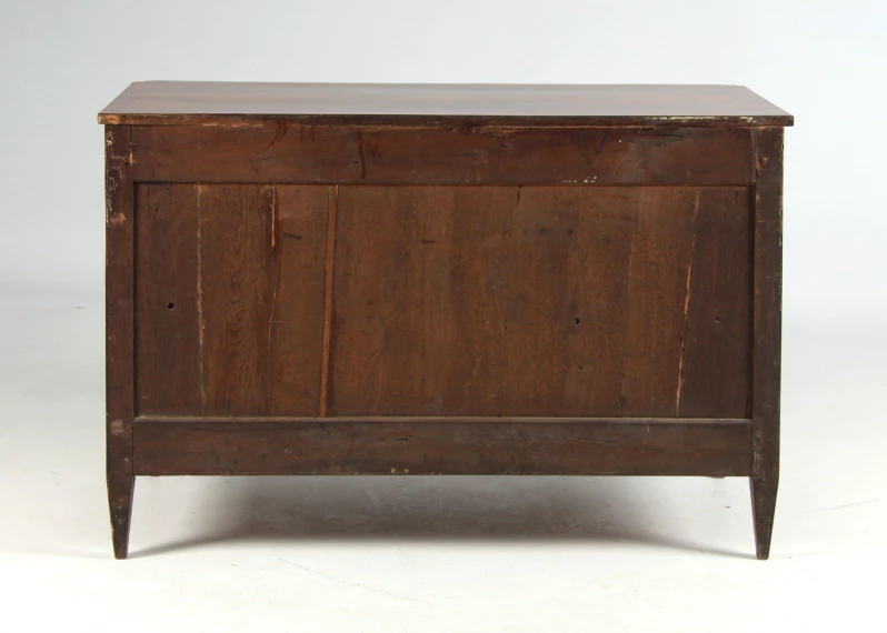 Les côtés de la commode sont simplement veinés et plaqués selon un tracé de veines parfaitement symétrique.