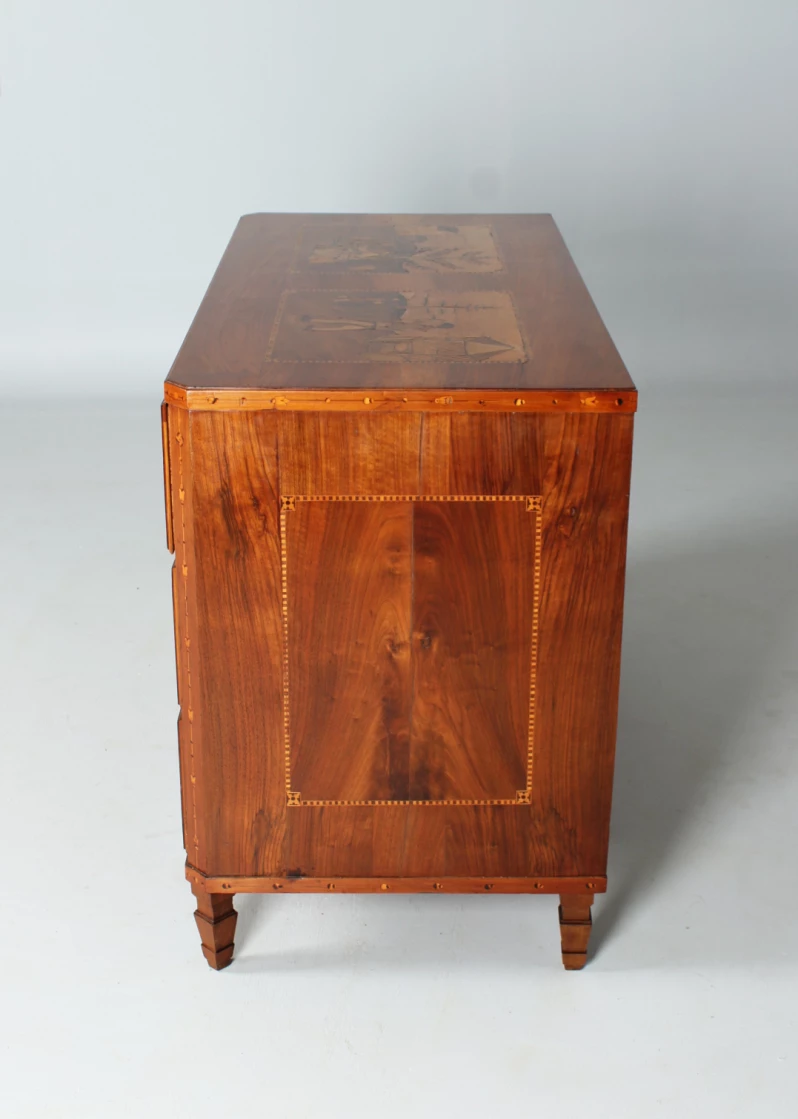 Commode néoclassique tout à fait exceptionnelle avec de très riches travaux de marqueterie.