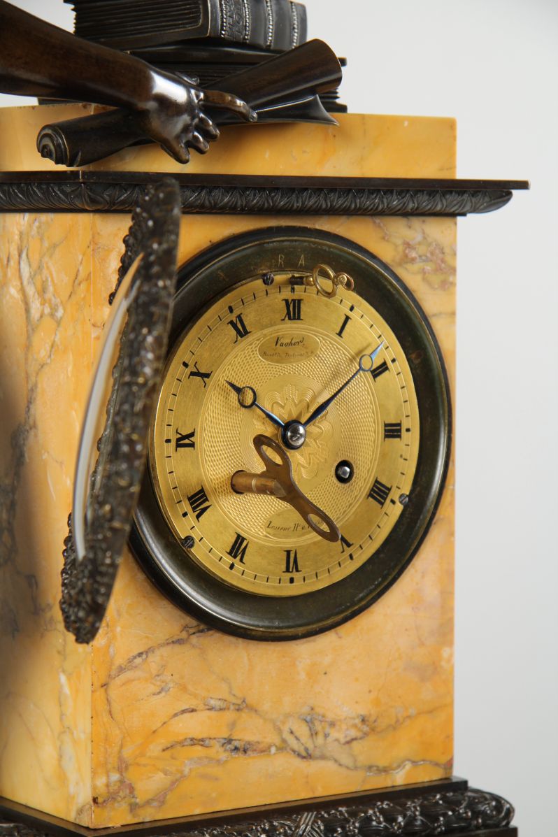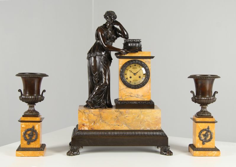 Selon Hans Ottomeyer et Peter Pröschel - Vergoldete Bronzen, Munich 1986 p.349, le projet du bronze pourrait avoir été réalisé par Pierre-Victor Ledure, qui a proposé en 1813 l'horloge "représentant l'étude" pour le château de Würzburg.