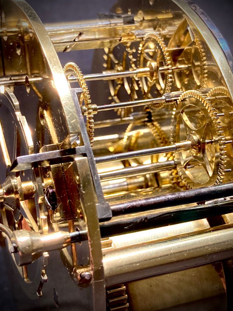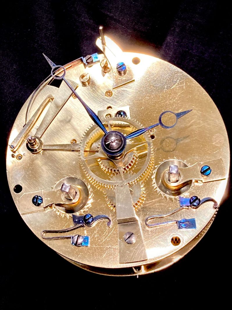 Lors du démontage et du nettoyage du mouvement, une signature datée -1825- a été remarquée sur les ressorts (voir photo). Comme les ressorts n'ont certainement pas été fabriqués par l'horloger lui-même, mais qu'ils étaient déjà achetés à l'époque, on peut supposer que cette signature a été apposée par le fabricant de ressorts.