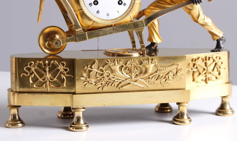 Le Journal des Dames et des Modes avait rendu compte en octobre 1807 du grand succès du Portefaix et écrivait alors en substance deux mois plus tard : "Inspirés par le grand succès de la pendule (Portefaix), qui consiste en une balle de coton transportée sur une fourche, les marchands de bronze ont imaginé qu'une pendule dans laquelle la balle est placée sur une brouette deviendrait un second succès de vente. Mais la brouette a fait un tabac".