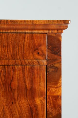 Le compartiment est entouré d'un total de dix tiroirs de différentes tailles. Le fond amovible situé sous le tiroir central inférieur dissimule deux tiroirs secrets.