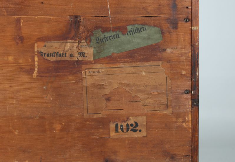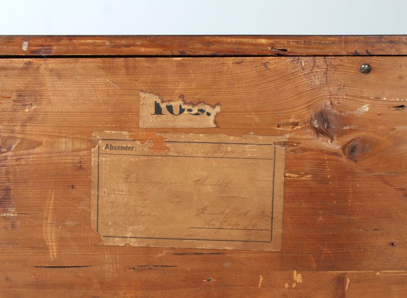 Dans le tiroir supérieur, il y a un autocollant en forme de losange avec un numéro d'inventaire.