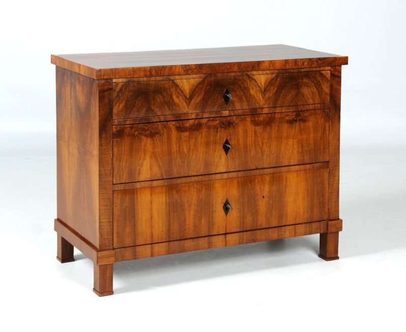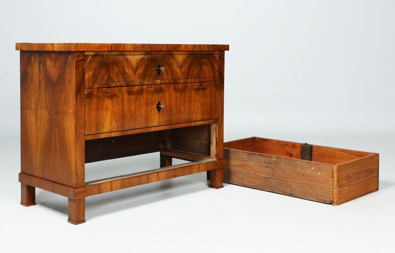 Commode Biedermeier classique et austère avec un veinage tout à fait fantastique.