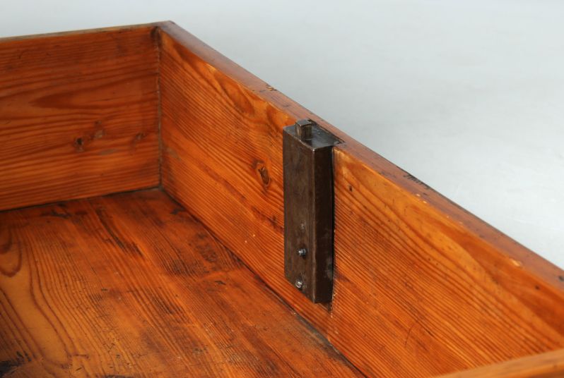 Le tiroir inférieur est doté de la serrure d'origine, les deux autres ont été remplacées.