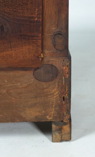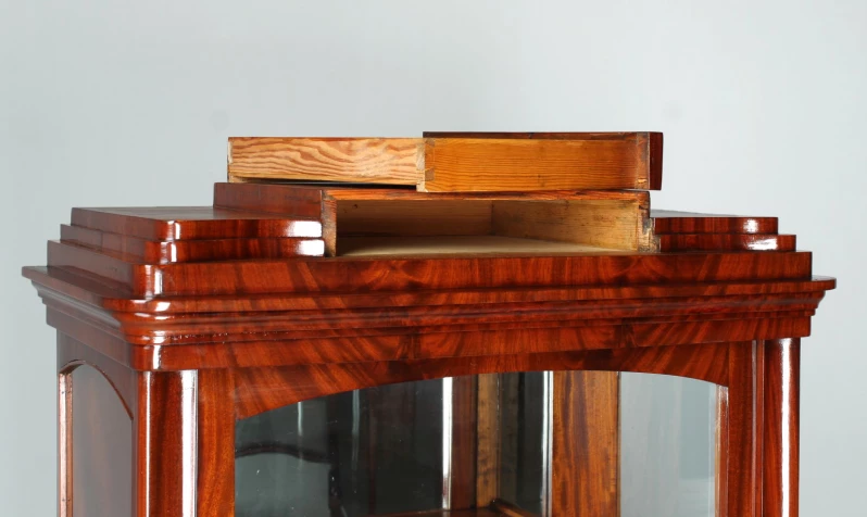 Les pilastres sont légèrement bombés et les pieds suivent cette forme. Les côtés et la porte sont munis chacun de quatre croisillons, les vitrages du compartiment supérieur sont légèrement incurvés vers le haut.