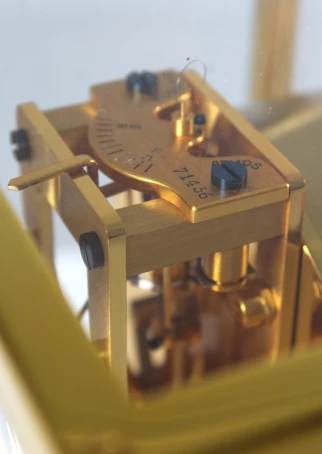 Une différence de température de seulement un degré Celsius remonte la montre pendant 48 heures. Cet intéressant mécanisme de remontage est complété par un excellent mouvement d'une précision extrême avec un lourd pendule de torsion (pendule rotatif).