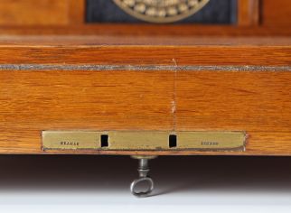 La partie principale de la boîte est équipée de divers compartiments à lettres. On y trouve également trois petits tiroirs, des porte-stylos et un calendrier à commande manuelle.