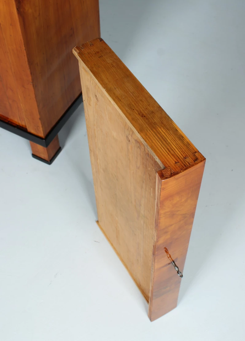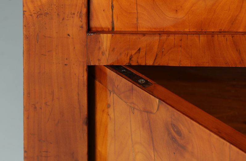 État fraîchement restauré et poli à la gomme-laque. Excellente conservation de la patine. Absolument authentique. Les tiroirs coulissent de manière fluide, les serrures fonctionnent.