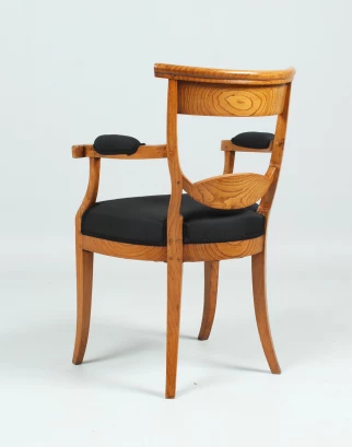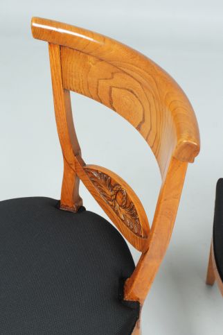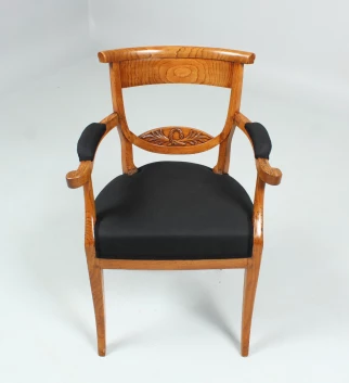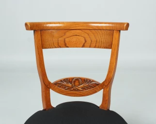 Magnifique et exceptionnelle conception des planches du dossier avec des feuilles de palmier et une couronne de laurier - symboles qui pourraient représenter le pouvoir chrétien et séculier. La planche transversale supérieure du dossier est fortement bombée et assure un confort d'assise agréable.