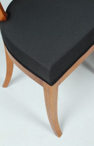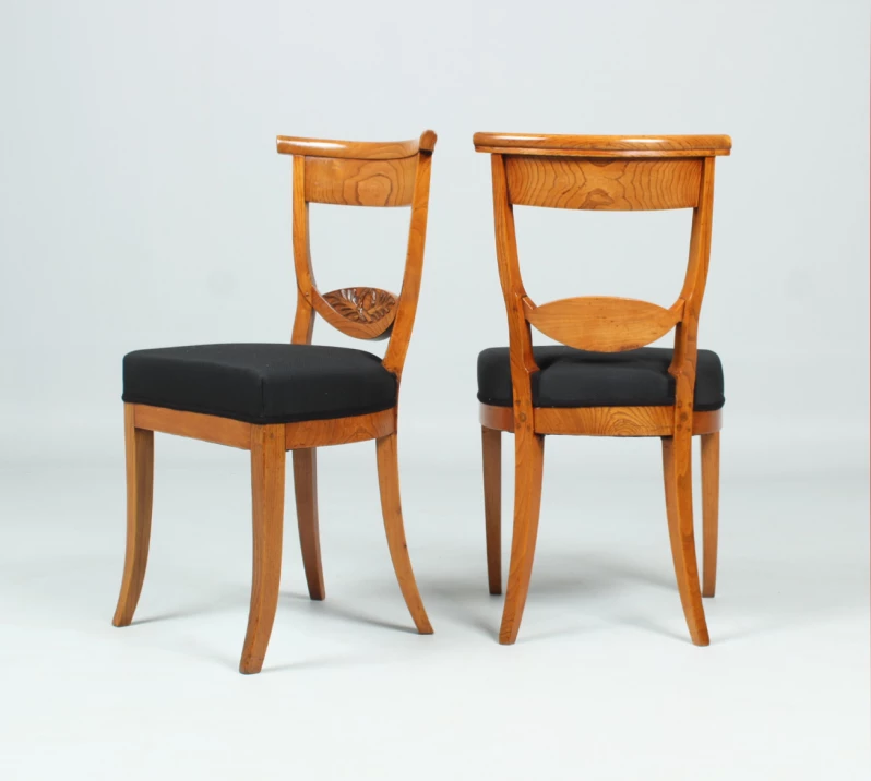 Pieds légèrement évasés avec une belle courbure. Les pieds arrière se fondent élégamment dans le dossier.