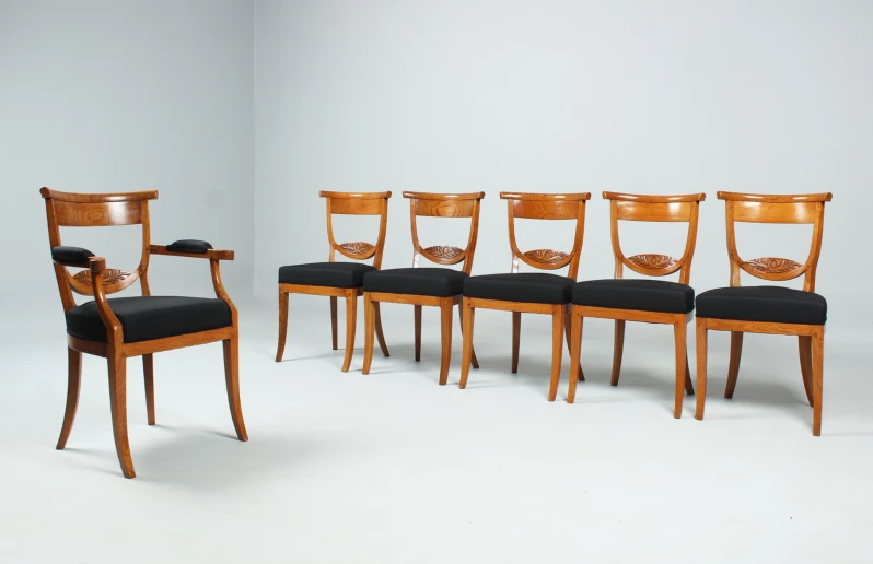 L'ensemble se compose de cinq chaises et d'une chaise avec accoudoirs.