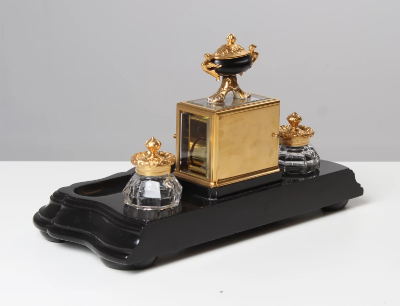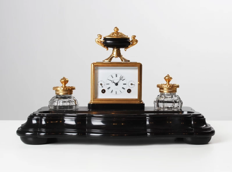 Très rare ensemble de bureau ancien avec pendulette de très haute qualité.