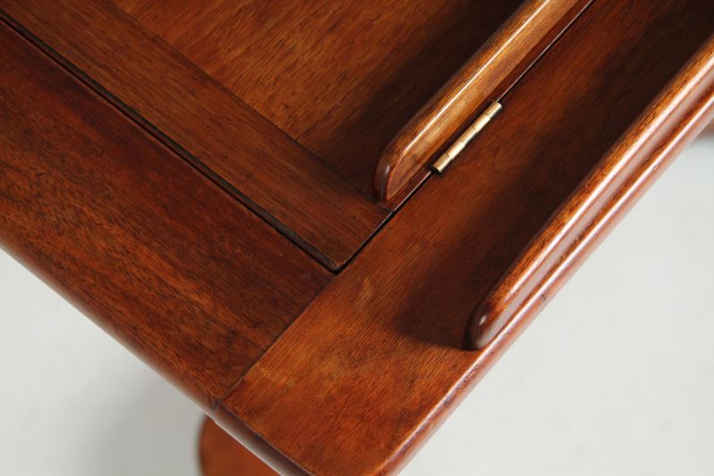 Le plateau est doté de serre-livres amovibles des deux côtés. Un autre pupitre encastré dans le plateau et pouvant être relevé peut avoir servi à poser de petites esquisses.