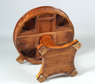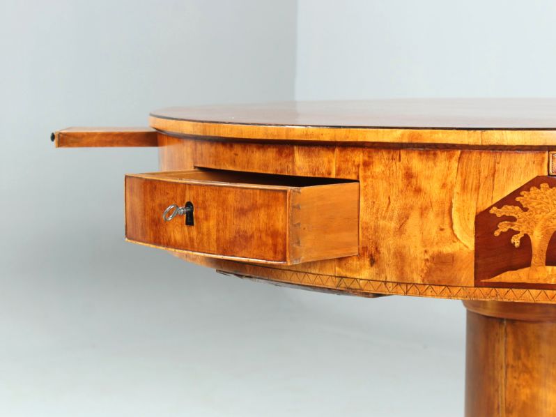 Exceptionnelle et rare table de jeu Biedermeier pour quatre personnes. Plaqué bouleau sur épicéa.