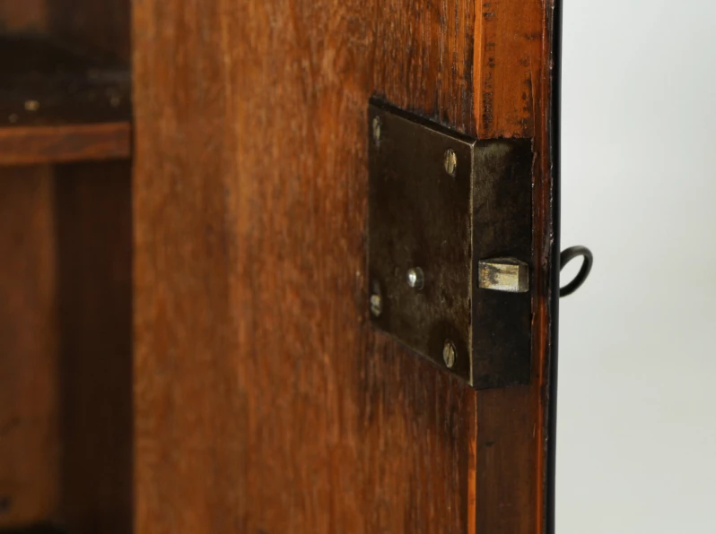 Derrière les portes, il y a un grand compartiment ouvert avec une étagère. Lorsque la porte est ouverte, nous voyons l'ancienne serrure à ressort d'origine.