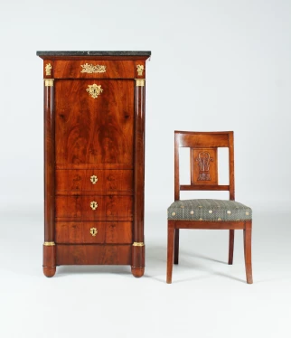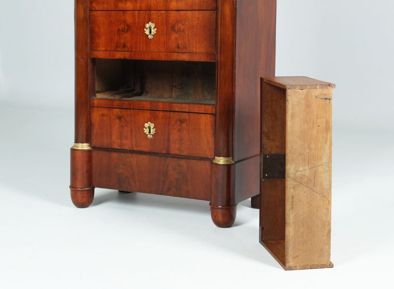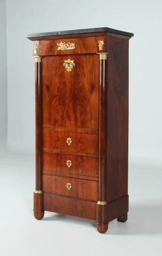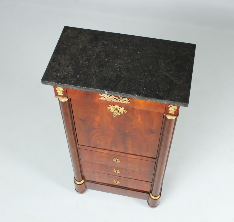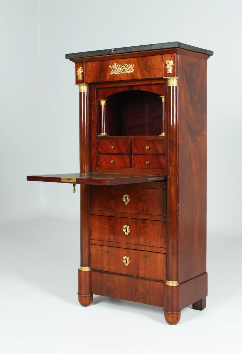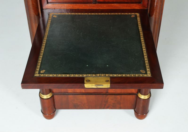 Exceptionnel petit secrétaire de l'Empire français. Plaqué acajou sur chêne.