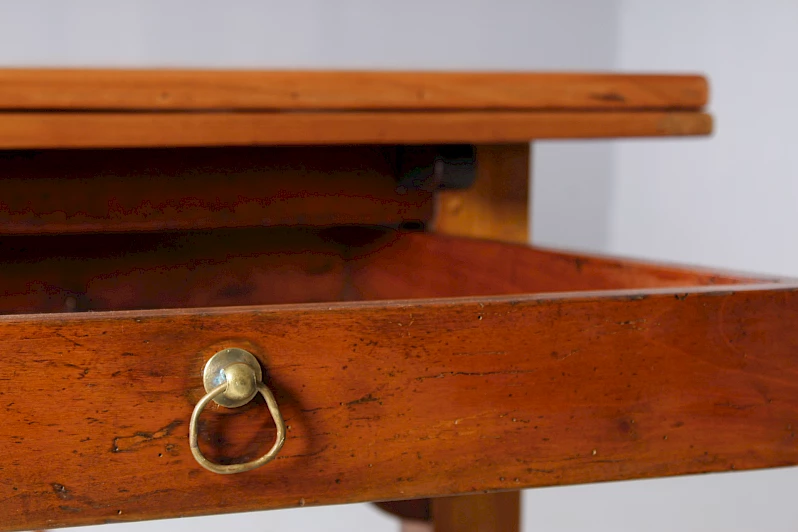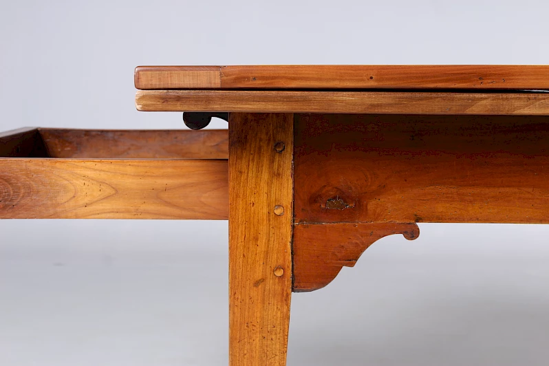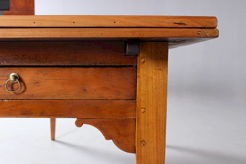 Il legno è stato restaurato e pronto per essere abitato, le crepe sono state chiuse a regola d'arte, la superficie è oliata e può essere pulita con un panno umido. La splendida patina è stata completamente conservata. Sono chiaramente visibili le tracce dell'età e dell'uso. Questi segni dell'età sono stati sapientemente restaurati e rendono il mobile assolutamente autentico.